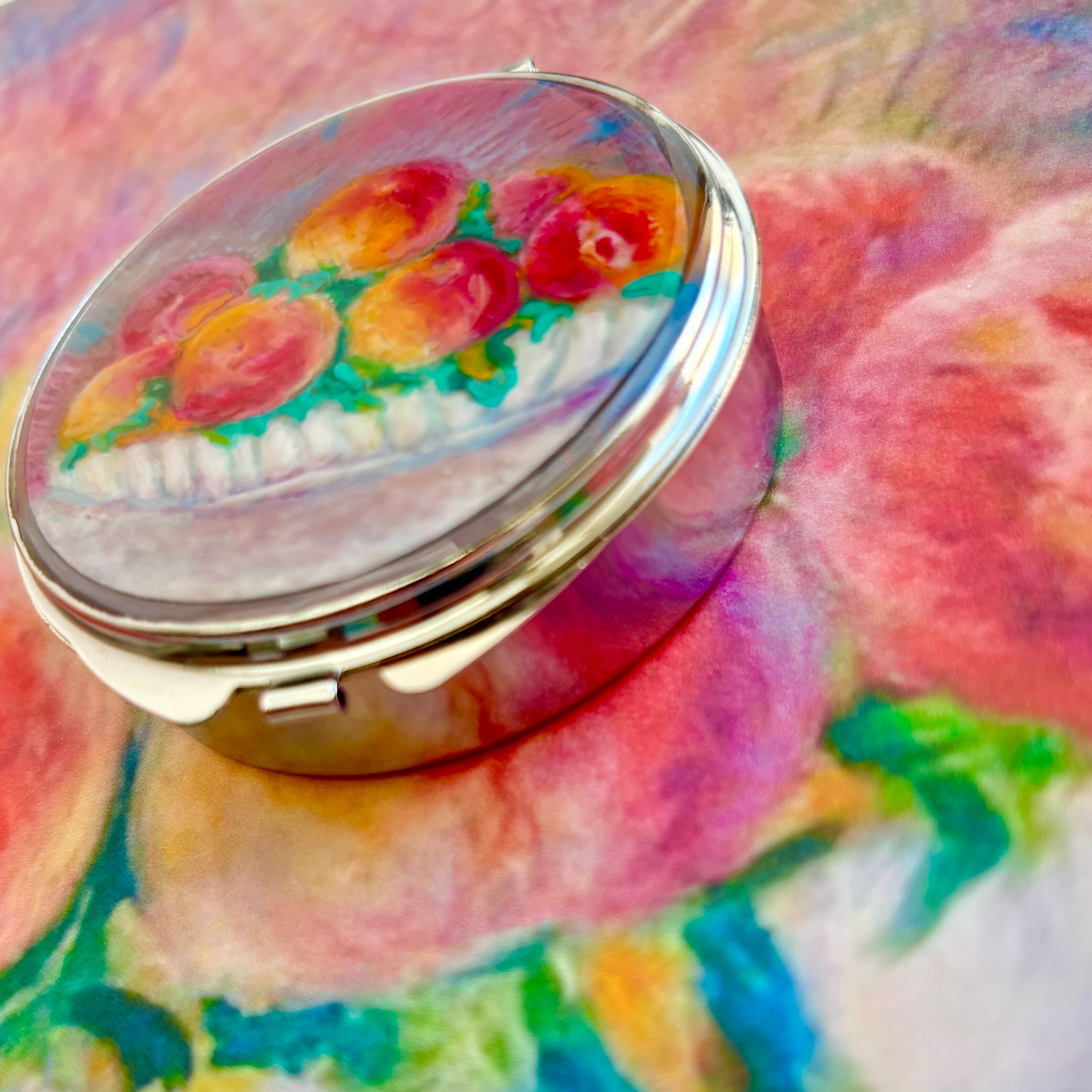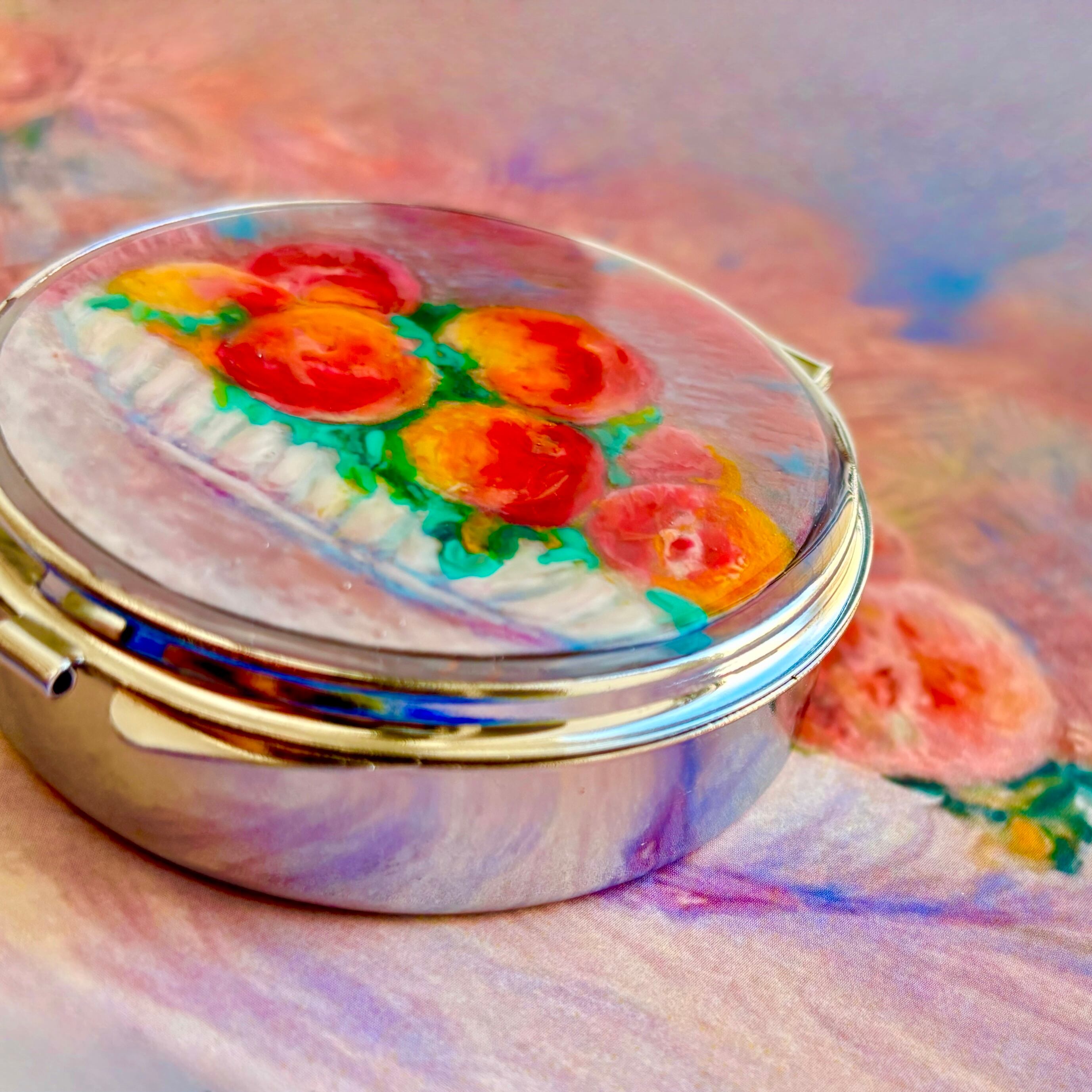 印象派を代表する画家、ルノワールが描いた「桃」をモチーフに、ひとつひとつ手描きで仕上げたサプリメントケースです。